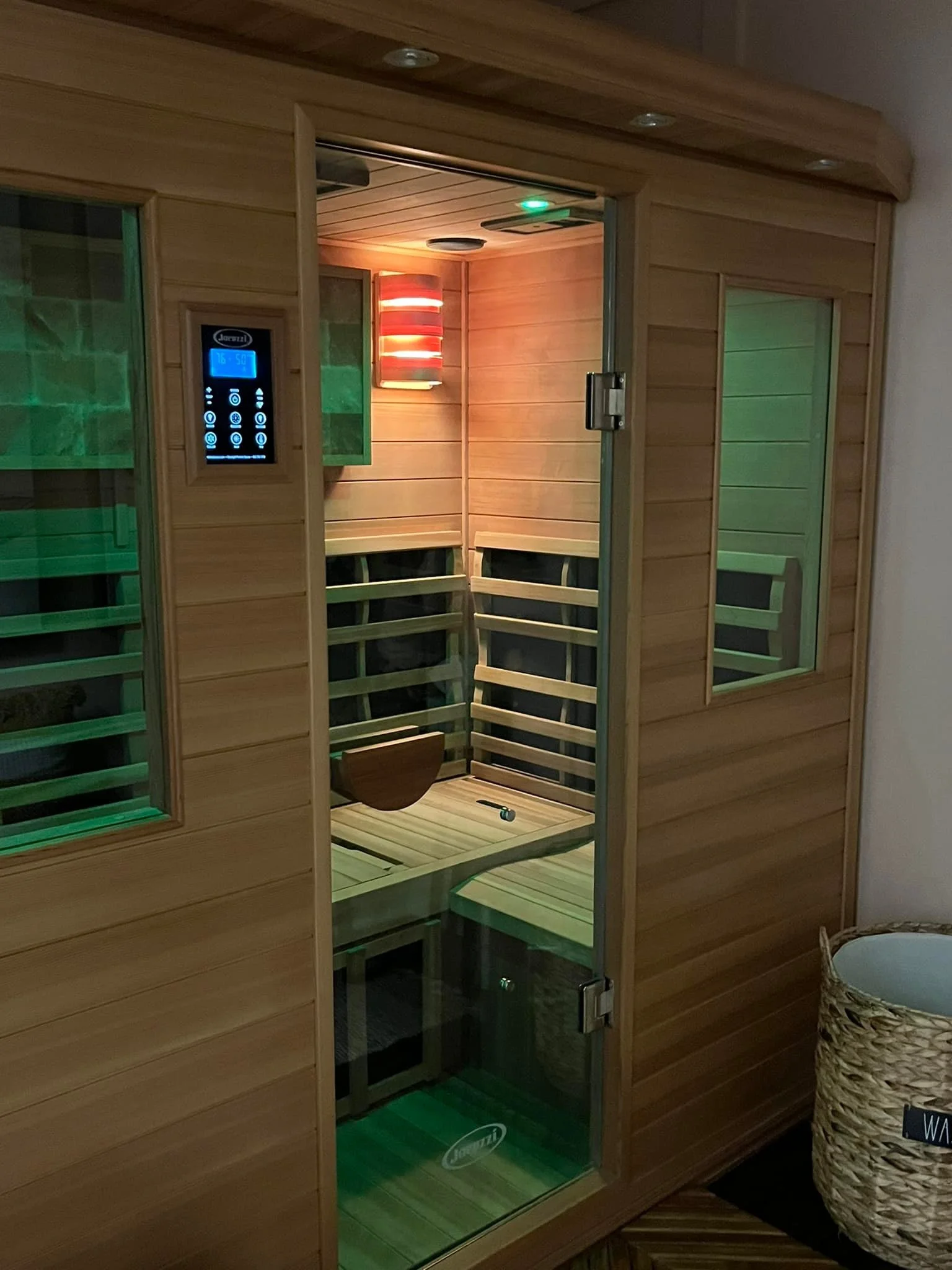 Our sauna has the benefits of 3 modalities: thermal (heat) therapy, far-infrared with chromotherapy, and heated Himalayan salt therapy. This combination takes the benefits of each therapy to the next level.